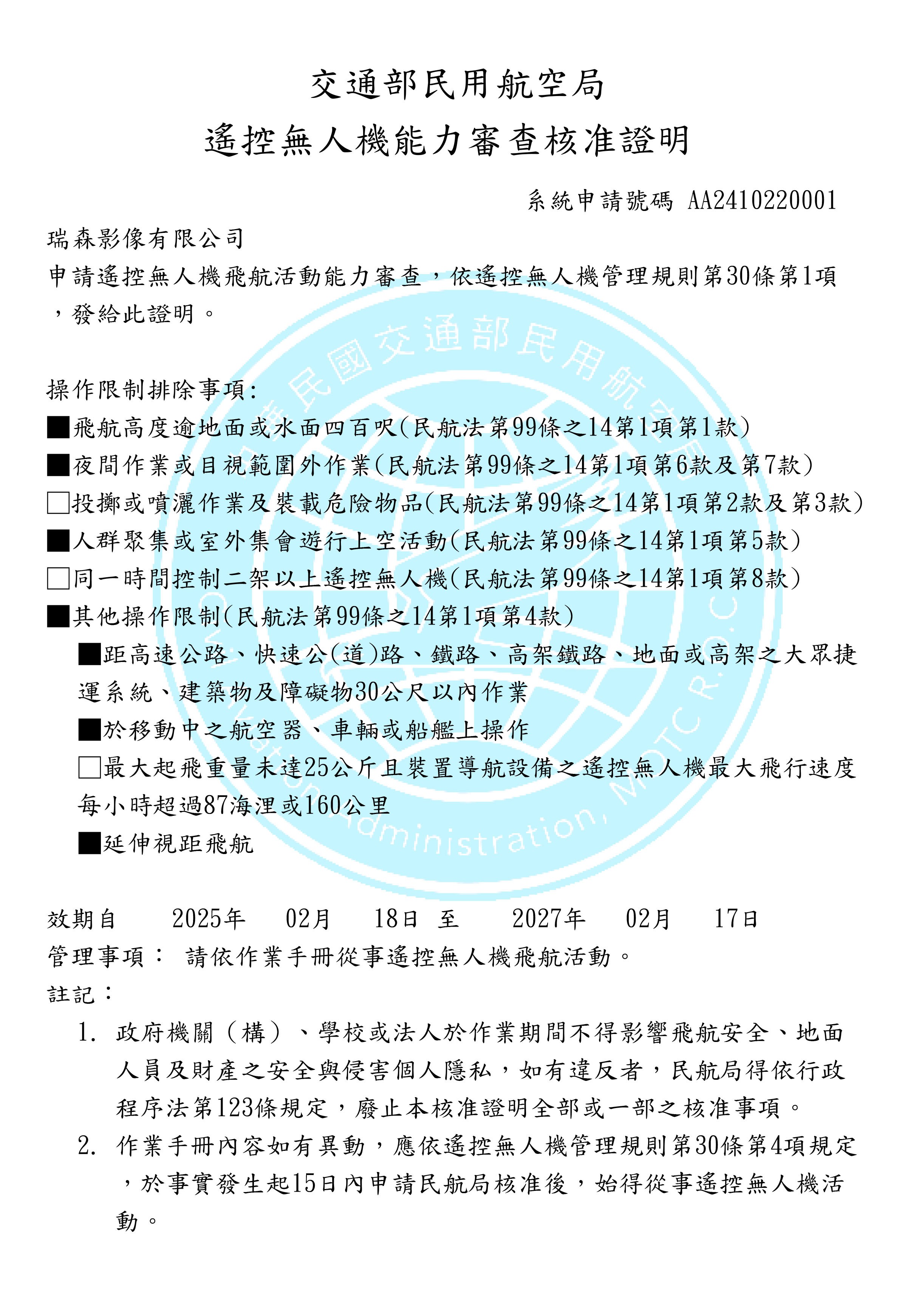 我們具備完整的資質,讓您免除法律風險與飛安疑慮:
